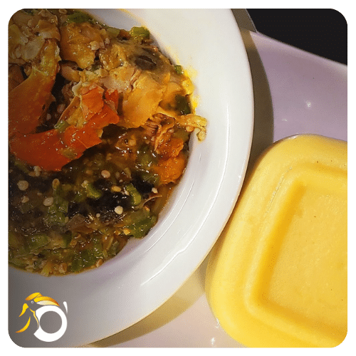 Une spécialité togolaise composée de pâte de maïs accompagnée de sa sauce gombo et d’un assortiment généreux de viandes. Un voyage culinaire authentique et réconfortant.